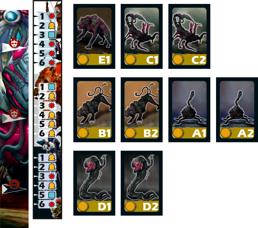Instead of lining up the foe cards next to the tactics bar, you instead line up Foe ID cards. These small cards allow you to have multiples of the same type of foe.